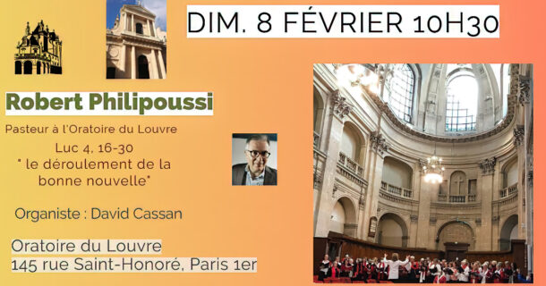 Le dimanche 8 février, le pasteur Philipoussi présidera le culte, au Temple de l’Oratoire du Louvre 10:30, 145 rue Saint-Honoré, Paris 1e.