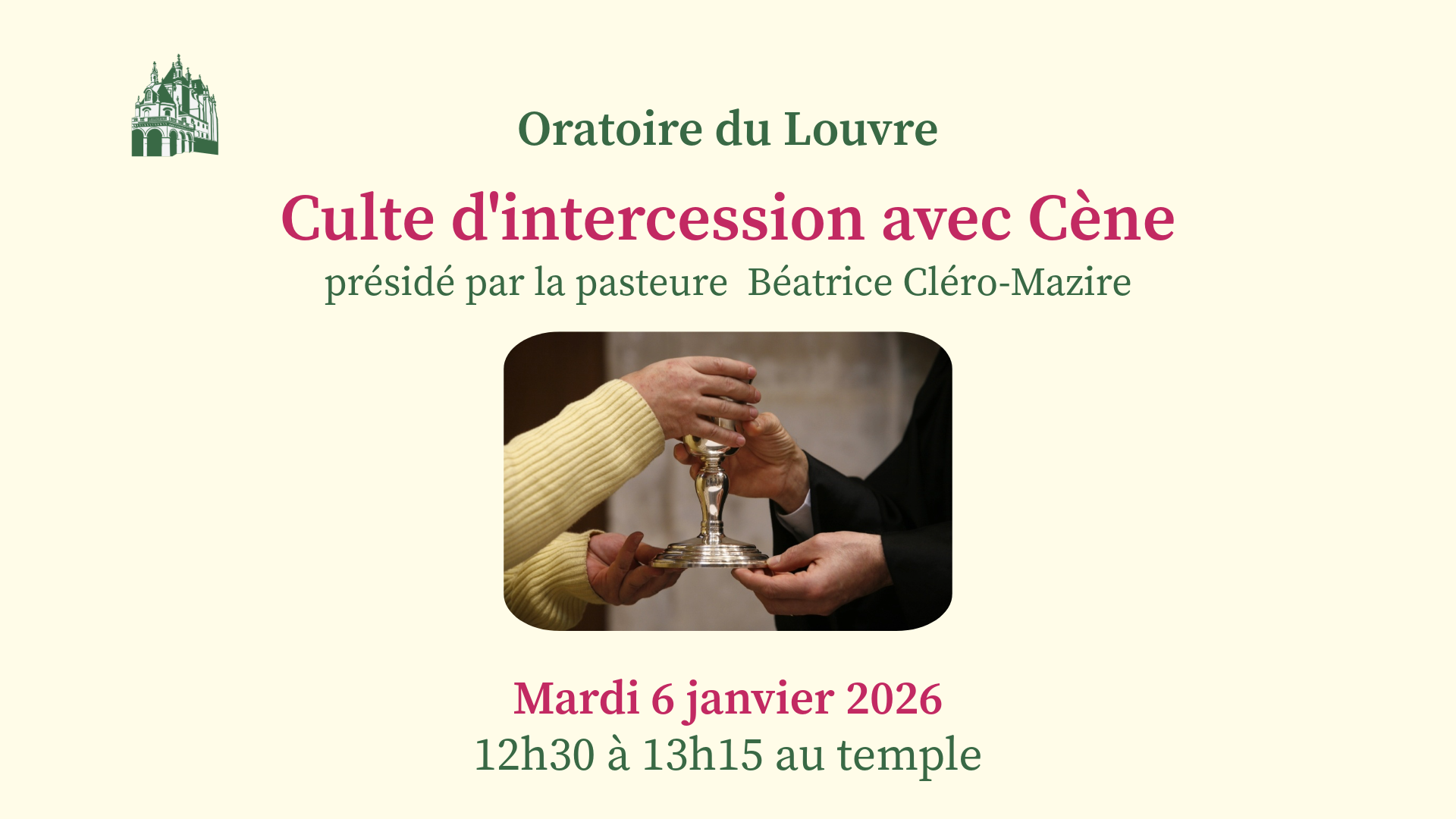 Le culte, présidé par l’un.e ou l’autre de vos pasteur.e.s se déroule au Temple de l’Oratoire du Louvre, 145 rue St Honoré, Paris 1.