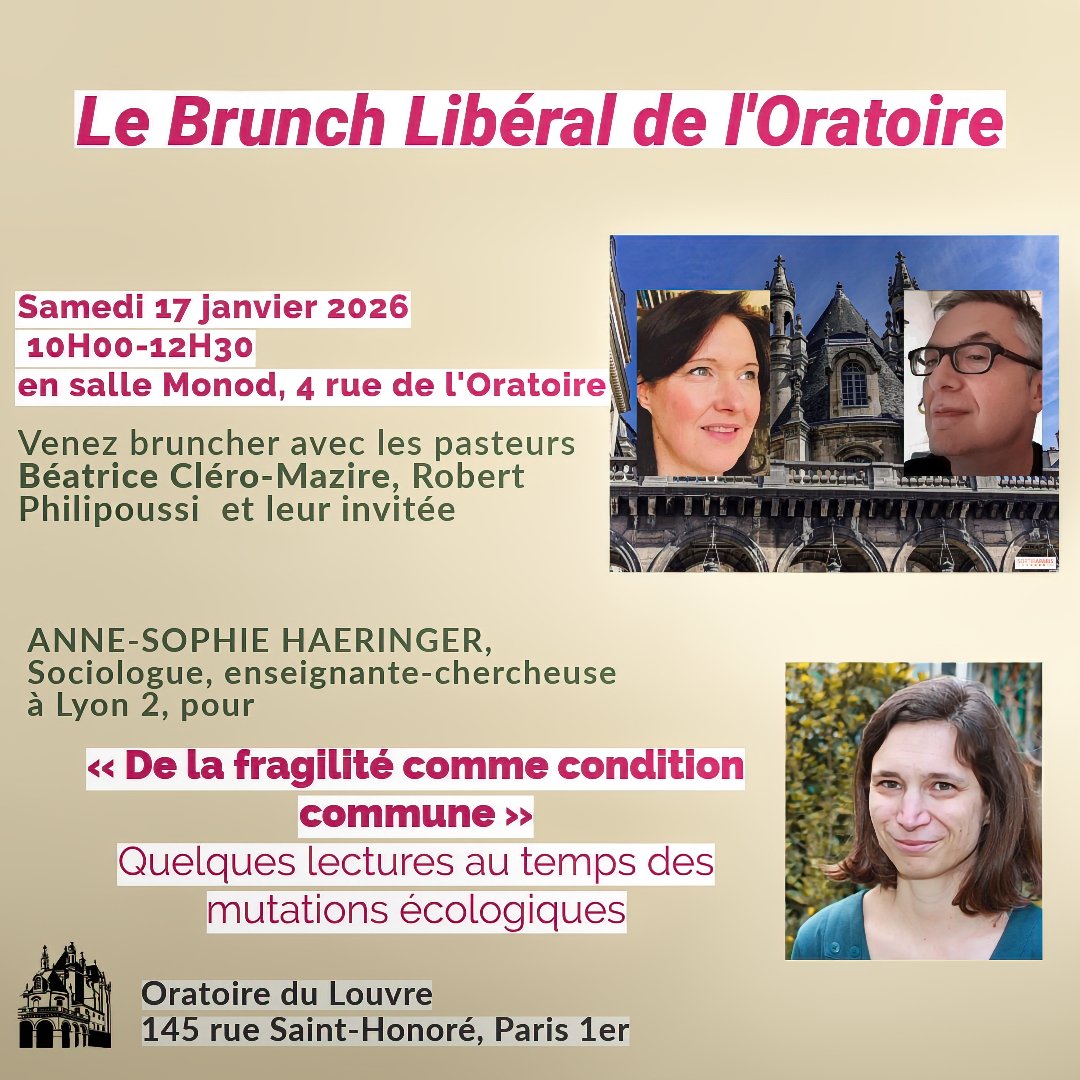 Samedi 11 janvier venez retrouver les pasteurs et leur invitée du brunch libéral à 10h en salle Monod au 2ème étage du 4 rue de l’Oratoire.
