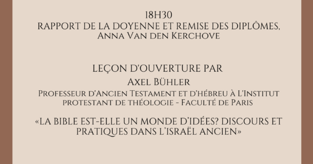 LEÇON INAUGURALE INSTITUT PROTESTANT DE THÉOLOGIE- PARIS LE 9 OCTOBRE