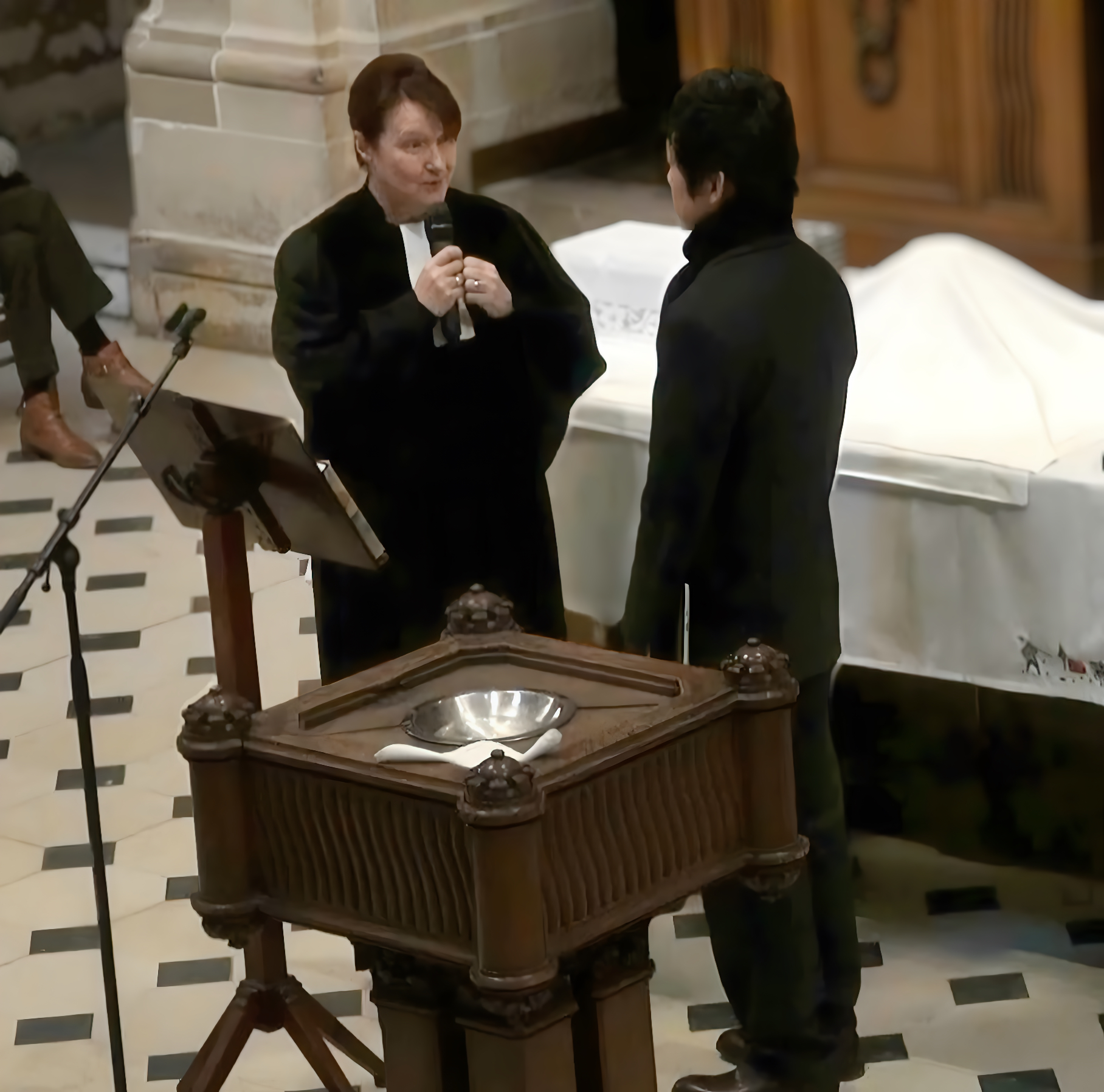Bonjour à toutes et tous. Je m’appelle Akihisa. Je remercie tout d’abord la pasteure Béatrice Cléro-Mazire qui m’a accompagné tout au long de la préparation de mon baptême et d’avoir proposé que mon baptême ait lieu le jour de Noël. C’est un grand honneur pour moi d’être devant vous aujourd’hui. Je suis très heureux que vous soyez toutes et tous mes témoins.